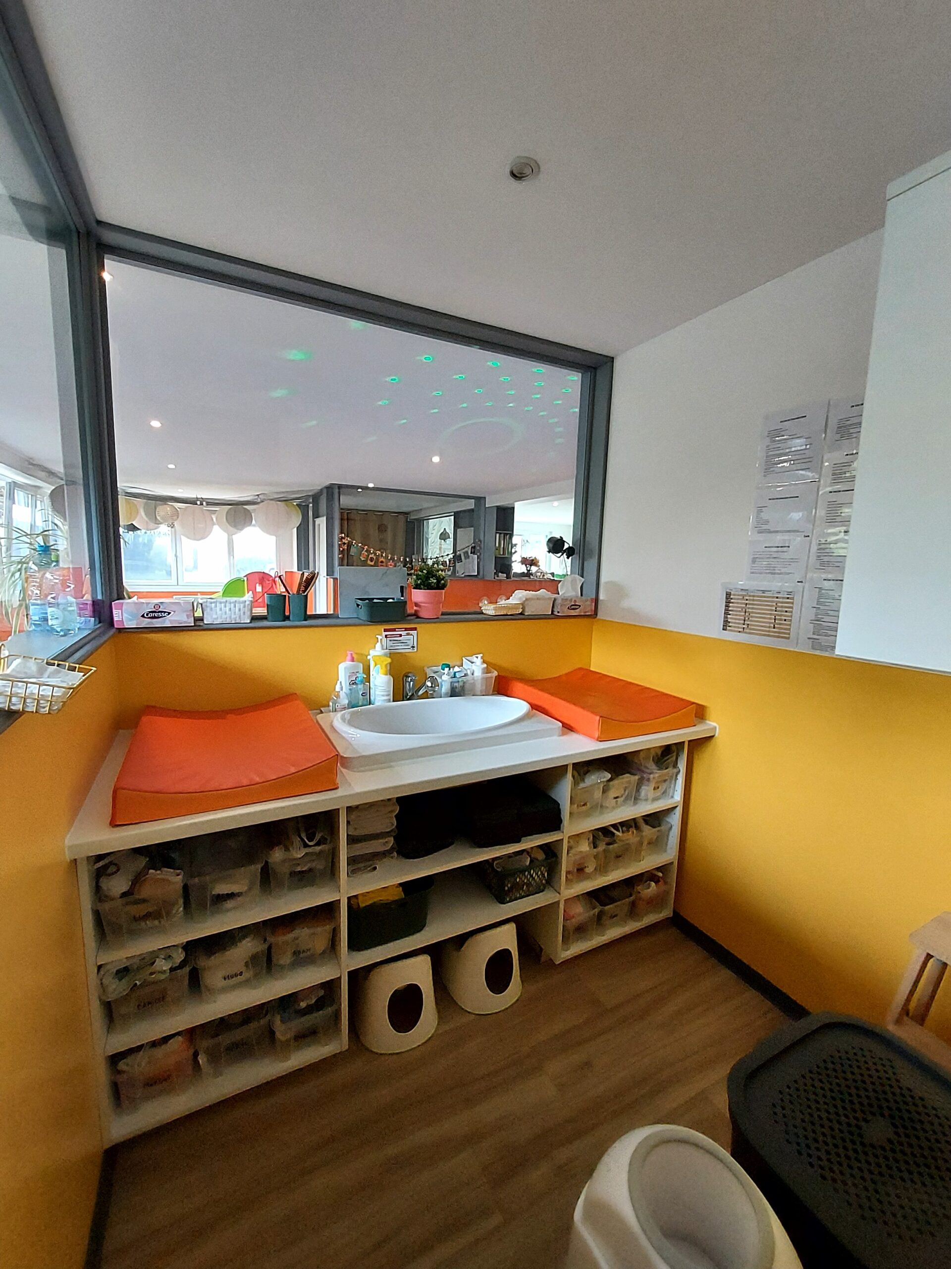 Nous sommes convaincues de l’importance du « vivre ensemble » dans les apprentissages. Aussi, nous ne possédons pas de parc pour les bébés. Nous apprenons aux plus grands à être vigilants avec les enfants plus petits ou plus vulnérables, et notre surveillance constante nous permet de garantir la sécurité dans ce contexte.